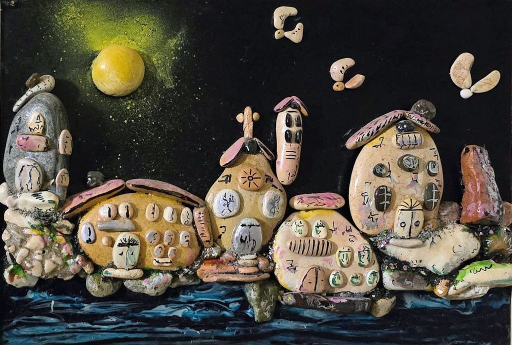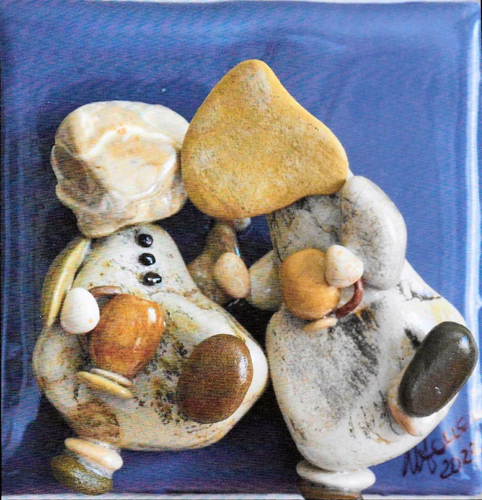 Sono felicissima di essermi fermata e di aver avuto, grazie all’abilità, alla fantasia e all’ingegno di questo artista, questo dialogo silenzioso e meraviglioso con i suoi sassi che prendono vita.