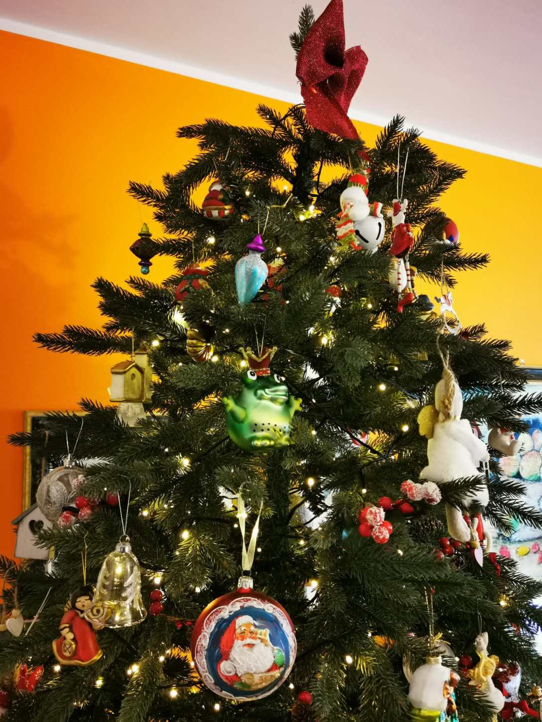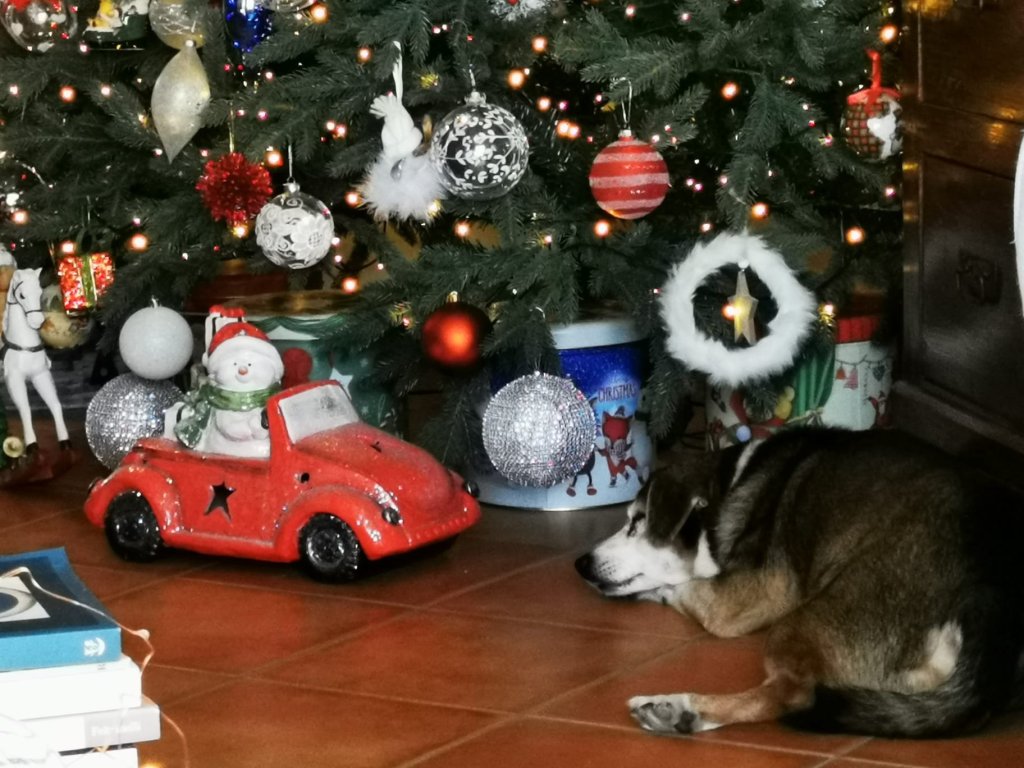Avevo deciso che non lo avrei festeggiato, che non avrei fatto l’albero e non avrei addobbato la mia casa da perfetta natalosa che sono “Tanto non verrà nessuno, i ragazzi non ci saranno”, mio marito si è rifiutato di assecondarmi in questa deriva di tristezza natalizia e in un batter d’occhio, a differenza degli altri anni in cui lo dovevo implorare perchè andasse a prendere gli addobbi in garage, un giorno, rientrando in casa, ho trovato tutti gli scatoloni pronti nel mio soggiorno … mi ha praticamente costretta: o passavo il Natale con gli scatoloni in casa o davo forma al tutto. Ramo, dopo ramo, lucina dopo lucina, il mio albero ha preso forma, le palline sono andata al loro posto, i carillon hanno iniziato a suonare ed ora sono felice di non averlo deluso, né lui né il mio pelosetto che, ormai anziano e malato, sembra stia apprezzando molto il clima natalizio.